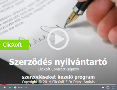 A ClicXoft.ContractRegistry program cégek és szervezetek működéséhez kapcsolódó szerződések teljes körű, auditálható menedzselését teszi lehetővé. Biztosítja a szerződések készítését, nyilvántartását, archiválását, valamint a szerződésekhez kapcsolódó események és határidős teendők regisztációját. Segíti a szerződéskezelés auditját.
